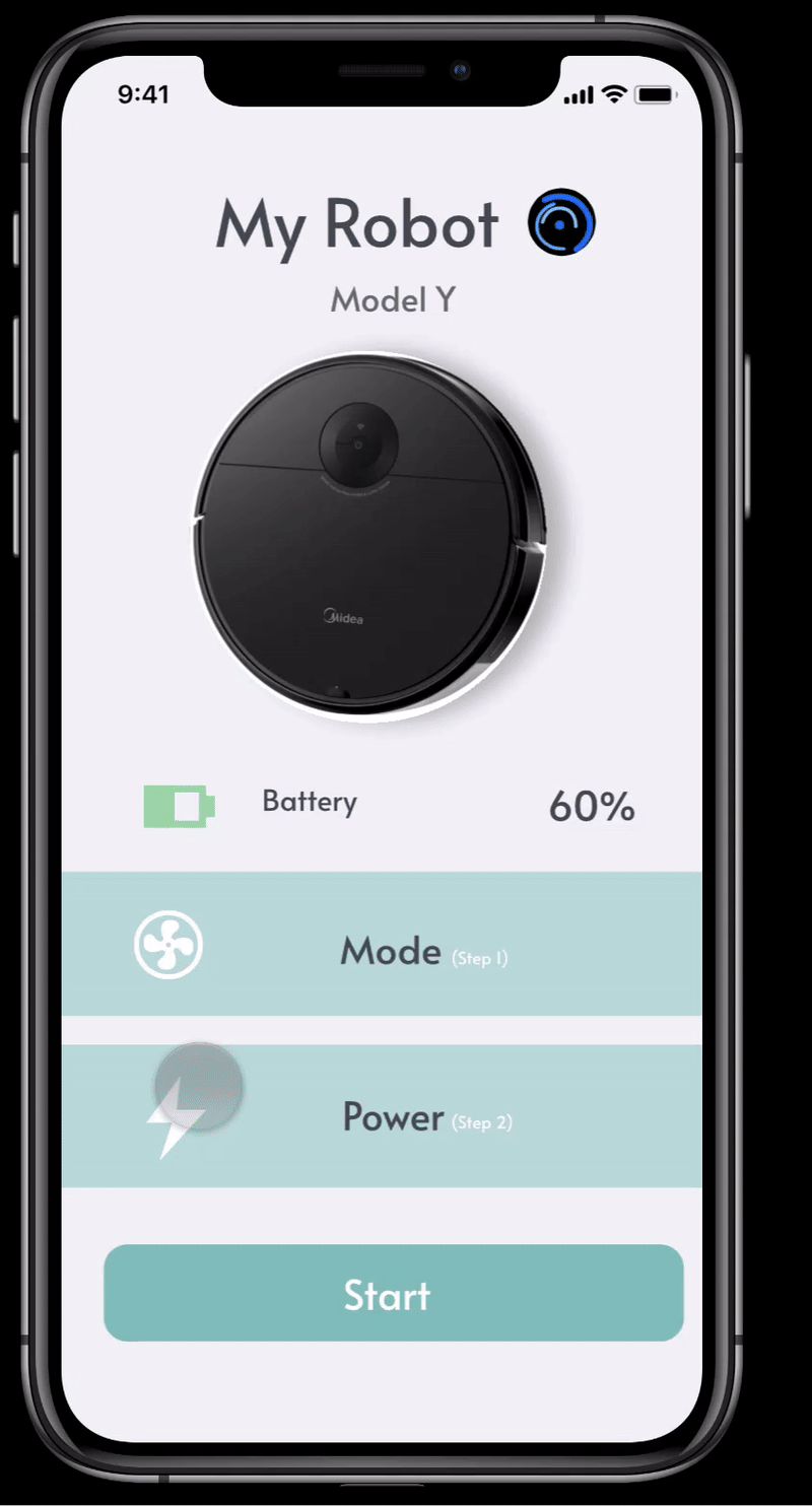 采用滚动与分页的交互方式(在Mode页面切换清扫模式),确保操作自然流畅。