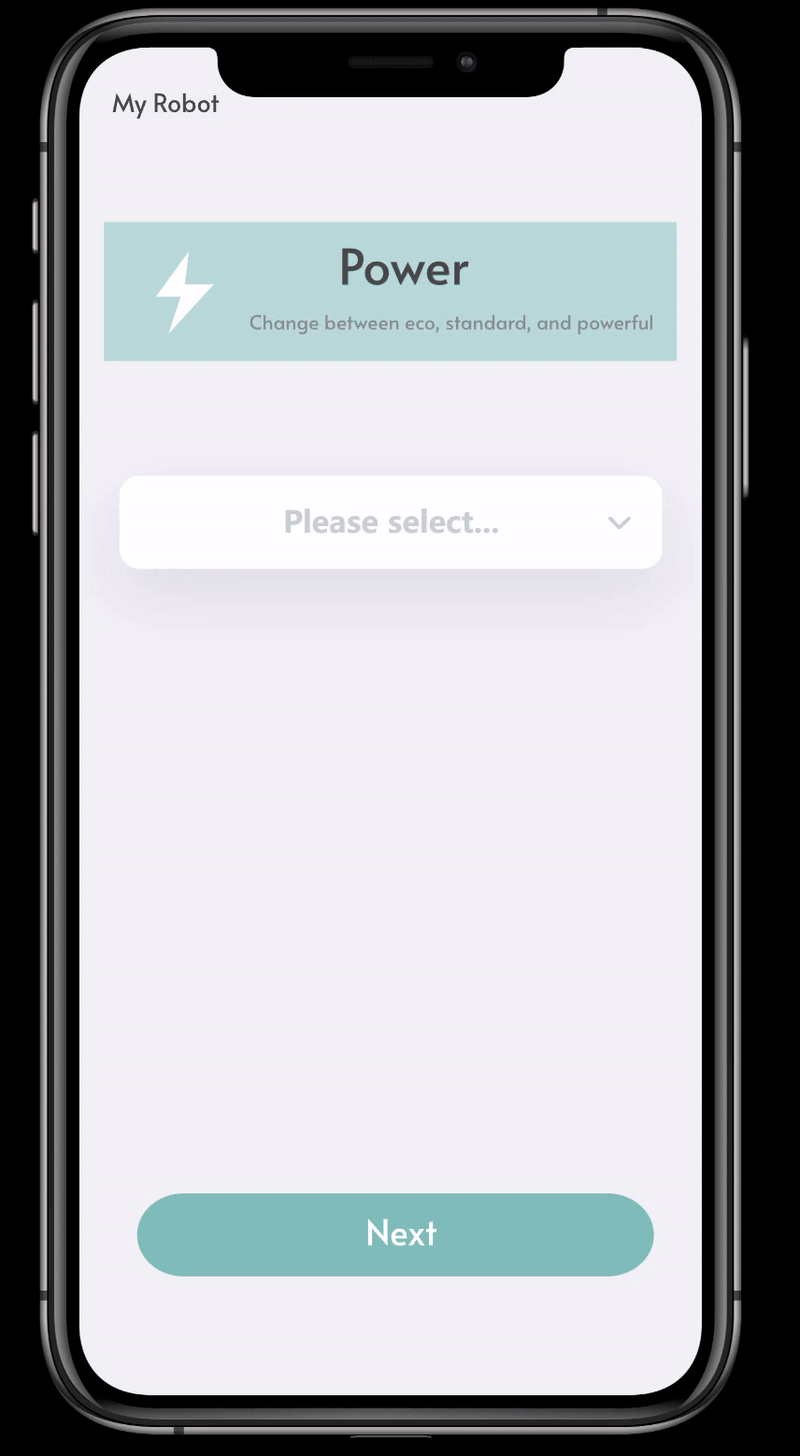 在此页面,用户可以选择扫地机器人的工作功率模式,包括:
